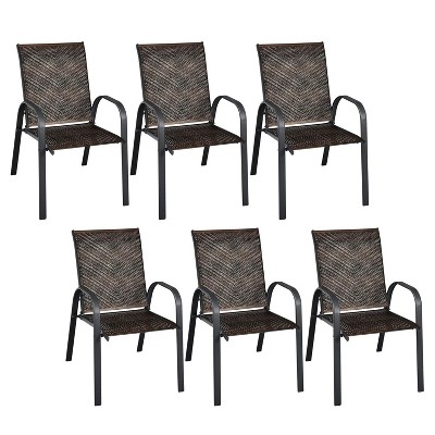 ADILE Set of 6 Outdoor PE Wicker Stackable Dining Chairs, Mix Brown