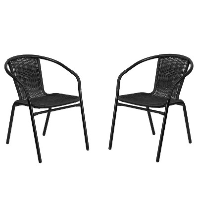 Modern Rattan Indoor/Outdoor Restaurant Dining Chairs, Set of 2, Black
