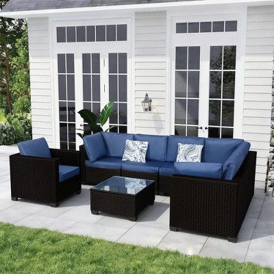 BAOURE 7 Pieces Outdoor Set Furniture Patio Furniture Sets Blue Conversation Sets Balcony Furniture Outdoor Sectional for Outdoor Indoor Backyard Lawn