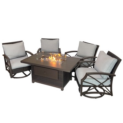 Kinger Home Ethan 5-Piece Rattan Wicker Propane Fire Pit Set with an Aluminum Frame