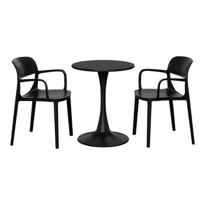 WestinTrends Playa 3-Piece Round Metal Bistro Dining Table Set And Stackable Resin Patio Dining Side Chairs