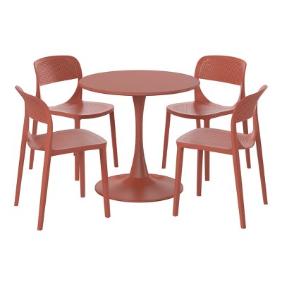 WestinTrends Playa 5-Piece Round Metal Bistro Dining Table Set And Stackable Resin Patio Dining Side Chairs