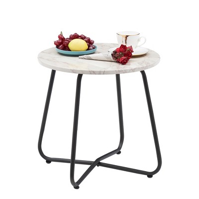 VECELO Patio Outdoor Side Snack Table, Small Round Anti-Rust Metal Style Desk for Garden or Balcony