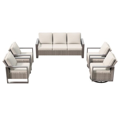 UPTIOT 6-Piece Wicker Outdoor Sectional Sofa Set
