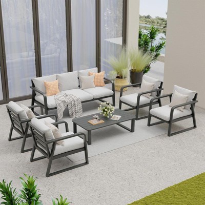 SUGOLD Aluminum Patio Conversation Set with Gray Cushions and Coffe Table
