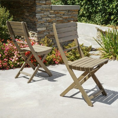 GDFStudio Hillside Outdoor Wood and Wicker Folding Bistro Chairs