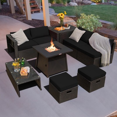 Costway 9PCS Patio Rattan Furniture Set Fire Pit Space-saving W/ Cushion cover
