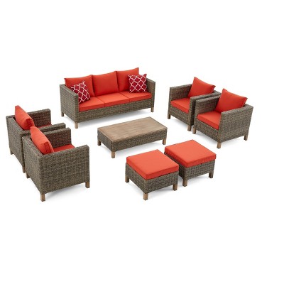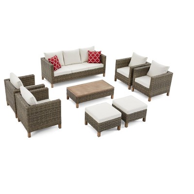 8 Piece Patio Conversation Sets with Cushions and Coffee Table