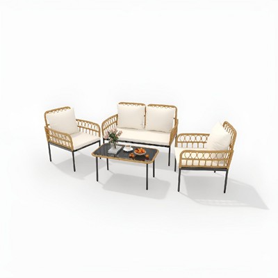 A: Most sets include a mix of seating and tables, such as sofas, chairs, coffee tables, or dining tables. Some collections also feature specialty pieces like loungers or fire pit tables.