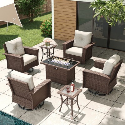 GDFStudio Venice Outdoor Wicker 5 Piece Swivel Club Chair and Fire Pit Set