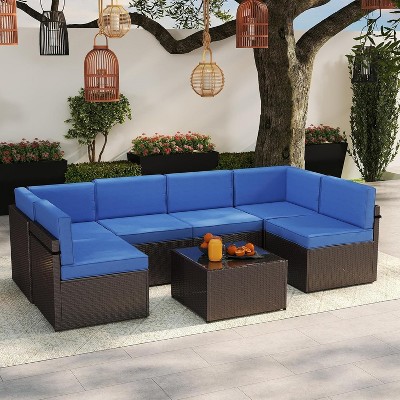 A: Most sets include a mix of seating and tables, such as sofas, chairs, coffee tables, or dining tables. Some collections also feature specialty pieces like loungers or fire pit tables.