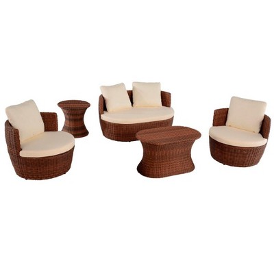 A: Most sets include a mix of seating and tables, such as sofas, chairs, coffee tables, or dining tables. Some collections also feature specialty pieces like loungers or fire pit tables.