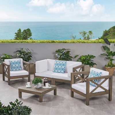 Christopher Knight Home Brava Outdoor Acacia Wood 4 Seater Chat Set with Cushions