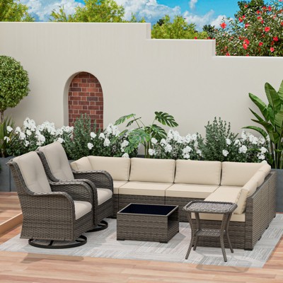 UPTIOT 9 Pieces Outdoor Wicker Sectional Sofa