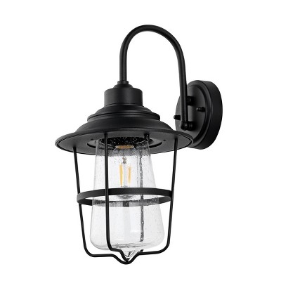 C Cattleya 2-Pack 13.25in. Matte Black Outdoor Wall Light Fixtures with Seeded Glass Shade