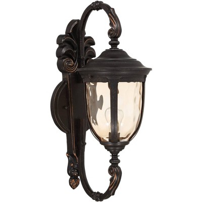 John Timberland Bellagio Vintage Rustic Outdoor Wall Light Fixture Veranda Bronze 26" Amber Hammered Glass for Post Exterior Barn Deck House Porch