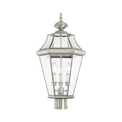 Take your exterior lighting to a whole new level. Lanterns are box-like frames made of glass or other translucent panels that allow light to shine through to create a rustic, timeless vibe. Lanterns can be hung from a hook or bracket, mounted on a post, or placed on a table or that mount to a ceiling are a great option for brightening up a covered porch , entryway , or dining area. Lanterns can be used with both real and flameless candles. Real candles can add a cozy and romantic touch to your outdoor space, while flameless candles provide the same warm glow without the risk of fire. Whether camping or relaxing on your patio, lanterns make a great alternative to brighten up any space.