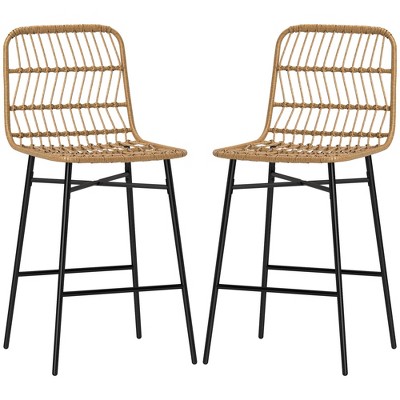 Aghana Digitals 2-Piece Yellow PE Rattan Bar Stools with Steel Frame, Footrest & Non-Skid Pads for