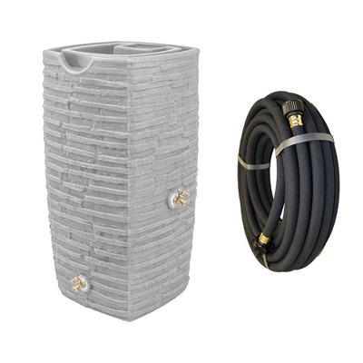 Good Ideas Impressions Riverwalk 50 Gallon Rain Barrel, Light Granite & 50' Hose