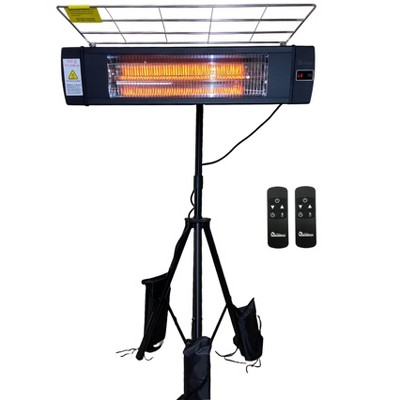 DR. INFRARED HEATER DR-338, 1500W Carbon Infrared Patio Heater, Indoor Outdoor Portable Tripod Mount, Wall/Ceiling Mount With Remote Control, Black