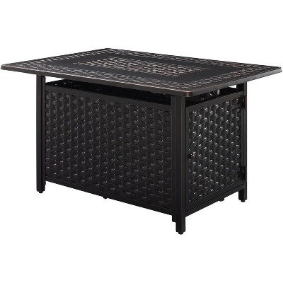 Fire Sense 63225 Henley Basketweave Aluminum Gas Fire Pit Table 55000 BTU Outdoor Multi-Functional with Fire Bowl Lid,Clear Fire Glass, Bronze, Square
