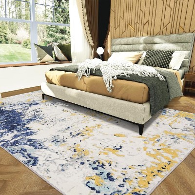 Abstract Pattern Washable Area Rug - Soft, Non-Slip Backing, Foldable, Stain Resistant, for Living Room, Bedroom, Office