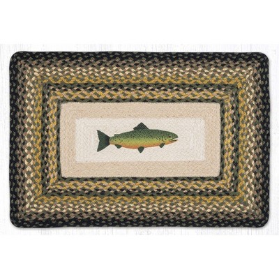 Earth Rugs Oblong Patch Rug – Hand-Stenciled Fish Design, 20"x30", Braided Natural Jute Accent Mat