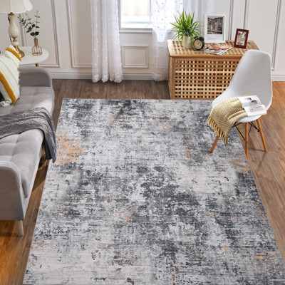 1150GSM Chenille Washable Abstract Area Rug - Foldable, Non-Slip, Low Pile, Gray-Yellow Tone, Modern Decor