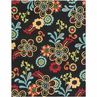 Hauteloom Thaxton Colorful Flowers on Black Area Rug