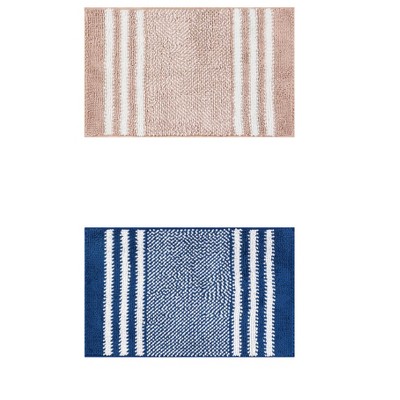 Unique Bargains Chenille Striped Pattern Non-Slip Bathroom Floor Mats 2 Pcs