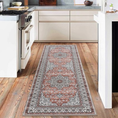 Vintage Washable Area Rug Floral Medallion Rugs, Ultra Soft Accent Bedroom Carpet
