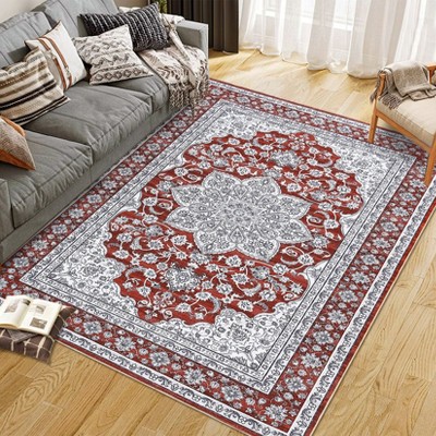 TackView Area Rug - Washable Low Pile Boho Rug for Living Room, Bedroom, Entryway, Dining Room - Vintage Distressed