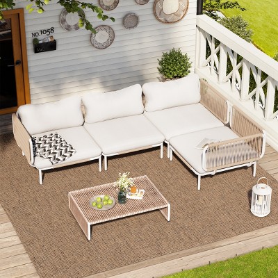 Make yourself a cozy nook in the patio or garden with some beautiful outdoor sectional seating. With Target’s wide range, you can find just the sectional furniture to suit your style and need. Be it a loveseat or a sectional sofa, you can get just about any outdoor furniture you might be looking for. A classy wooden patio set, a tightly-woven rattan sectional or a good old wicker sofa -- the collection has it all. With comfy seat cushions in all kinds of colors and patterns, these sectionals will blend with your existing decor. The all-weather patio furniture from Target is made to last and stands the test of year-round use. Give your patio some sturdy seating and prepare to lounge, care-free! Great sectional decor is the name of the game and can switch up any outdoor setting. Throw in an end table and a pretty rug with your sectional sofa for a comfy hangout spot you’ll never want to leave. Bring the charm and coziness of a good outdoor sectional piece to your patio, and watch it come to life. Check out Target’s outdoor sofa and seating range for some quality relaxing!