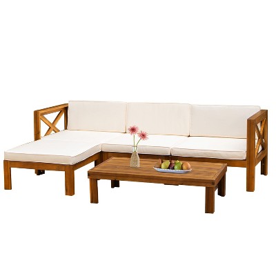 Make yourself a cozy nook in the patio or garden with some beautiful outdoor sectional seating. With Target’s wide range, you can find just the sectional furniture to suit your style and need. Be it a loveseat or a sectional sofa, you can get just about any outdoor furniture you might be looking for. A classy wooden patio set, a tightly-woven rattan sectional or a good old wicker sofa -- the collection has it all. With comfy seat cushions in all kinds of colors and patterns, these sectionals will blend with your existing decor. The all-weather patio furniture from Target is made to last and stands the test of year-round use. Give your patio some sturdy seating and prepare to lounge, care-free! Great sectional decor is the name of the game and can switch up any outdoor setting. Throw in an end table and a pretty rug with your sectional sofa for a comfy hangout spot you’ll never want to leave. Bring the charm and coziness of a good outdoor sectional piece to your patio, and watch it come to life. Check out Target’s outdoor sofa and seating range for some quality relaxing!