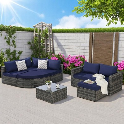 Make yourself a cozy nook in the patio or garden with some beautiful outdoor sectional seating. With Target’s wide range, you can find just the sectional furniture to suit your style and need. Be it a loveseat or a sectional sofa, you can get just about any outdoor furniture you might be looking for. A classy wooden patio set, a tightly-woven rattan sectional or a good old wicker sofa -- the collection has it all. With comfy seat cushions in all kinds of colors and patterns, these sectionals will blend with your existing decor. The all-weather patio furniture from Target is made to last and stands the test of year-round use. Give your patio some sturdy seating and prepare to lounge, care-free! Great sectional decor is the name of the game and can switch up any outdoor setting. Throw in an end table and a pretty rug with your sectional sofa for a comfy hangout spot you’ll never want to leave. Bring the charm and coziness of a good outdoor sectional piece to your patio, and watch it come to life. Check out Target’s outdoor sofa and seating range for some quality relaxing!