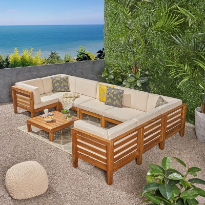 Make yourself a cozy nook in the patio or garden with some beautiful outdoor sectional seating. With Target’s wide range, you can find just the sectional furniture to suit your style and need. Be it a loveseat or a sectional sofa, you can get just about any outdoor furniture you might be looking for. A classy wooden patio set, a tightly-woven rattan sectional or a good old wicker sofa -- the collection has it all. With comfy seat cushions in all kinds of colors and patterns, these sectionals will blend with your existing decor. The all-weather patio furniture from Target is made to last and stands the test of year-round use. Give your patio some sturdy seating and prepare to lounge, care-free! Great sectional decor is the name of the game and can switch up any outdoor setting. Throw in an end table and a pretty rug with your sectional sofa for a comfy hangout spot you’ll never want to leave. Bring the charm and coziness of a good outdoor sectional piece to your patio, and watch it come to life. Check out Target’s outdoor sofa and seating range for some quality relaxing!