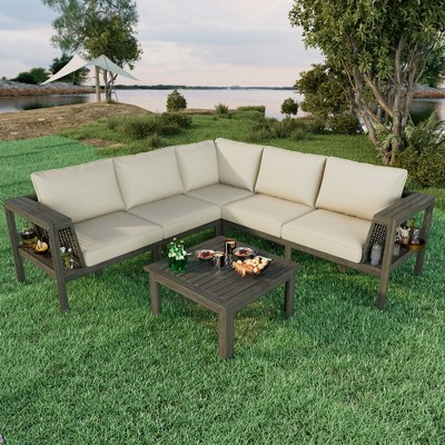 Make yourself a cozy nook in the patio or garden with some beautiful outdoor sectional seating. With Target’s wide range, you can find just the sectional furniture to suit your style and need. Be it a loveseat or a sectional sofa, you can get just about any outdoor furniture you might be looking for. A classy wooden patio set, a tightly-woven rattan sectional or a good old wicker sofa -- the collection has it all. With comfy seat cushions in all kinds of colors and patterns, these sectionals will blend with your existing decor. The all-weather patio furniture from Target is made to last and stands the test of year-round use. Give your patio some sturdy seating and prepare to lounge, care-free! Great sectional decor is the name of the game and can switch up any outdoor setting. Throw in an end table and a pretty rug with your sectional sofa for a comfy hangout spot you’ll never want to leave. Bring the charm and coziness of a good outdoor sectional piece to your patio, and watch it come to life. Check out Target’s outdoor sofa and seating range for some quality relaxing!