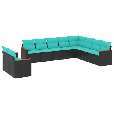 vidaXL Patio Sofa Set Black Sofa, Blue Cushions