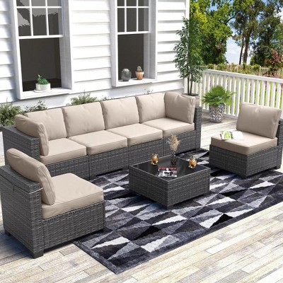 Make yourself a cozy nook in the patio or garden with some beautiful outdoor sectional seating. With Target’s wide range, you can find just the sectional furniture to suit your style and need. Be it a loveseat or a sectional sofa, you can get just about any outdoor furniture you might be looking for. A classy wooden patio set, a tightly-woven rattan sectional or a good old wicker sofa -- the collection has it all. With comfy seat cushions in all kinds of colors and patterns, these sectionals will blend with your existing decor. The all-weather patio furniture from Target is made to last and stands the test of year-round use. Give your patio some sturdy seating and prepare to lounge, care-free! Great sectional decor is the name of the game and can switch up any outdoor setting. Throw in an end table and a pretty rug with your sectional sofa for a comfy hangout spot you’ll never want to leave. Bring the charm and coziness of a good outdoor sectional piece to your patio, and watch it come to life. Check out Target’s outdoor sofa and seating range for some quality relaxing!