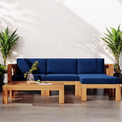 YOOCOZZ Wood Patio 5-Piece Sectional Sofa Seating Set with Cushions