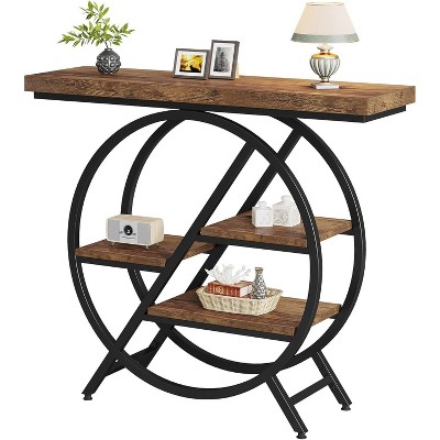 Gulches Chic 39.4" 4-Tier Console Table, Entryway Table with Geometric Metal Frame, Brown