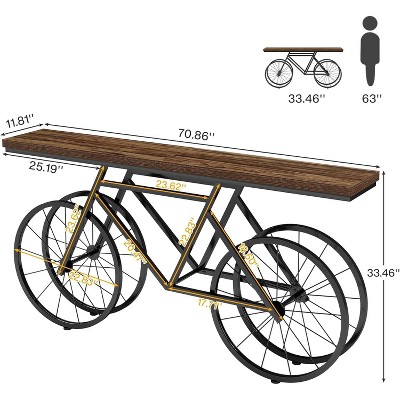 Gulches Creative 70.9" Bike Console Table, Extra Long Bicycle Table, Rustic Brown & Black