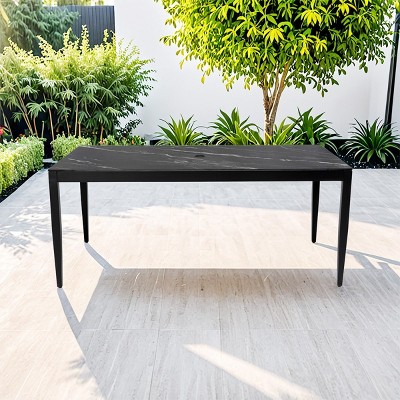 71" Aluminum Rectangle Outdoor Dining Table for 6, Patio Table with Sintered Stone Top, Umbrella Hole, for Patio or Garden - Koiai
