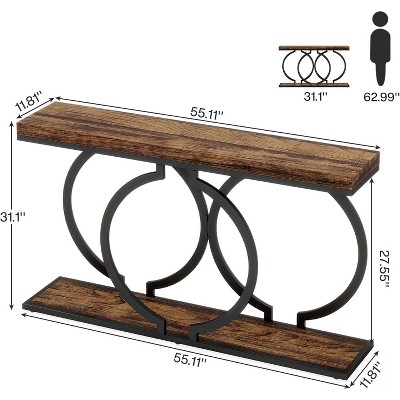 Gulches Glamorous 55" Console Table, Narrow Entryway Sofa Table with Geometric Metal Frame, Brown