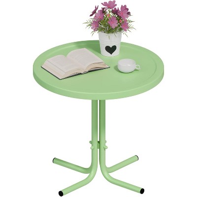 Round Outdoor Side Table for Patio, Deck & Garden – Weather-Resistant Metal Accent Table End Table with Vintage Style, Perfect for Drinks & Decor