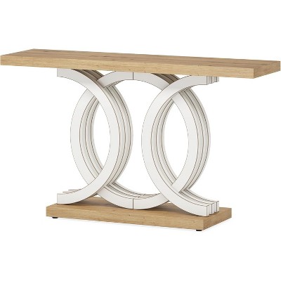 Gulches Farmhouse 55" Console Table, Hallway Sofa Table With Geometric Base, White