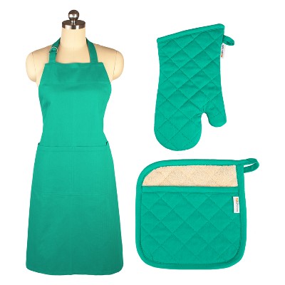 3pc Set Solid Cotton Apron Mitt Potholder - MU Kitchen