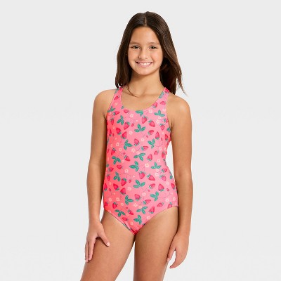 Girls' Strawberry Patch One Piece Swimsuit - Cat & Jack™ Coral Pink/Green