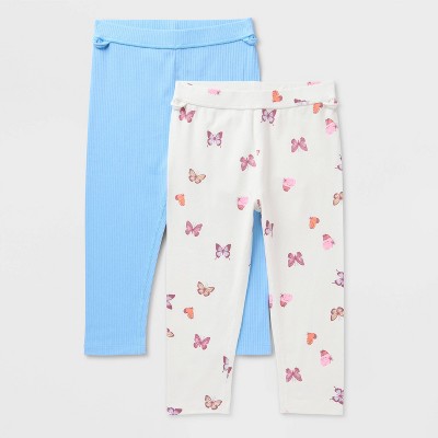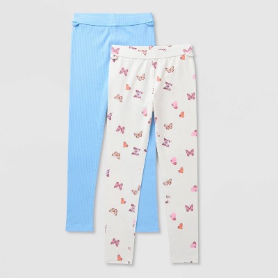 Girls' Adaptive 2pk Leggings - Cat & Jack™ Sky Blue/Cream
