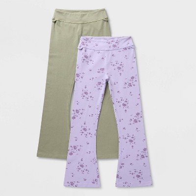 Girls' Adaptive 2pk Flare Leggings - Cat & Jack™ Olive Green/Lavender